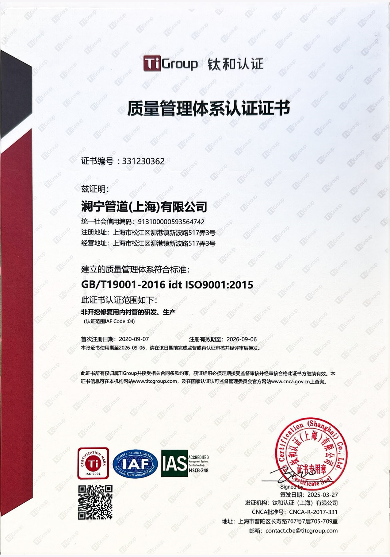 瀾寧管道(上海)有限公司是一家專業提供非開挖修復(CIPP)材料、樹脂及混合設備、真空壓膠設備、翻轉設備、固化設備、人員培訓、工程設計咨詢等全面解決方案的全外資技術企業。